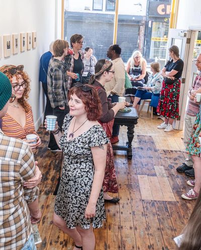 Exhibition opening night visitors at the Salon.